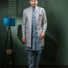 Men’s Blue Jacquard Indo-Western Sherwani Set – Premium Wedding & Reception Wear “Tradition wrapped in lavender luxury.”